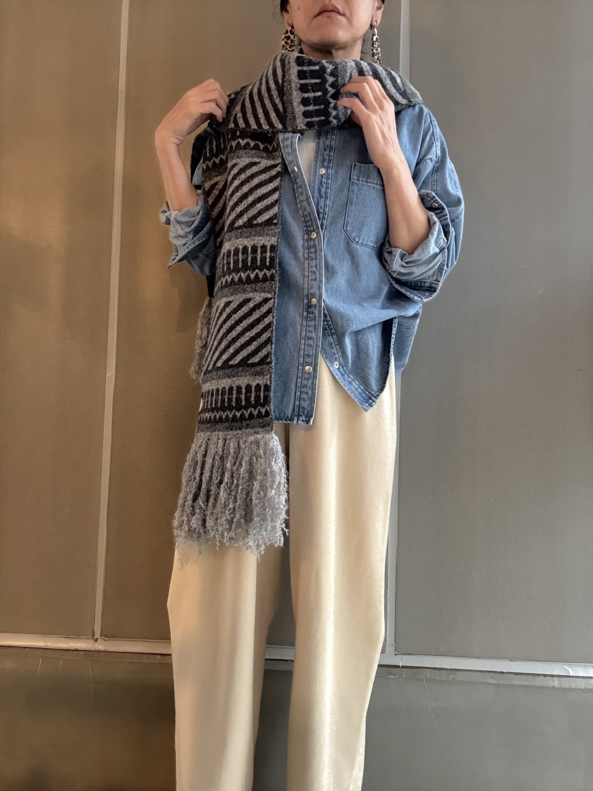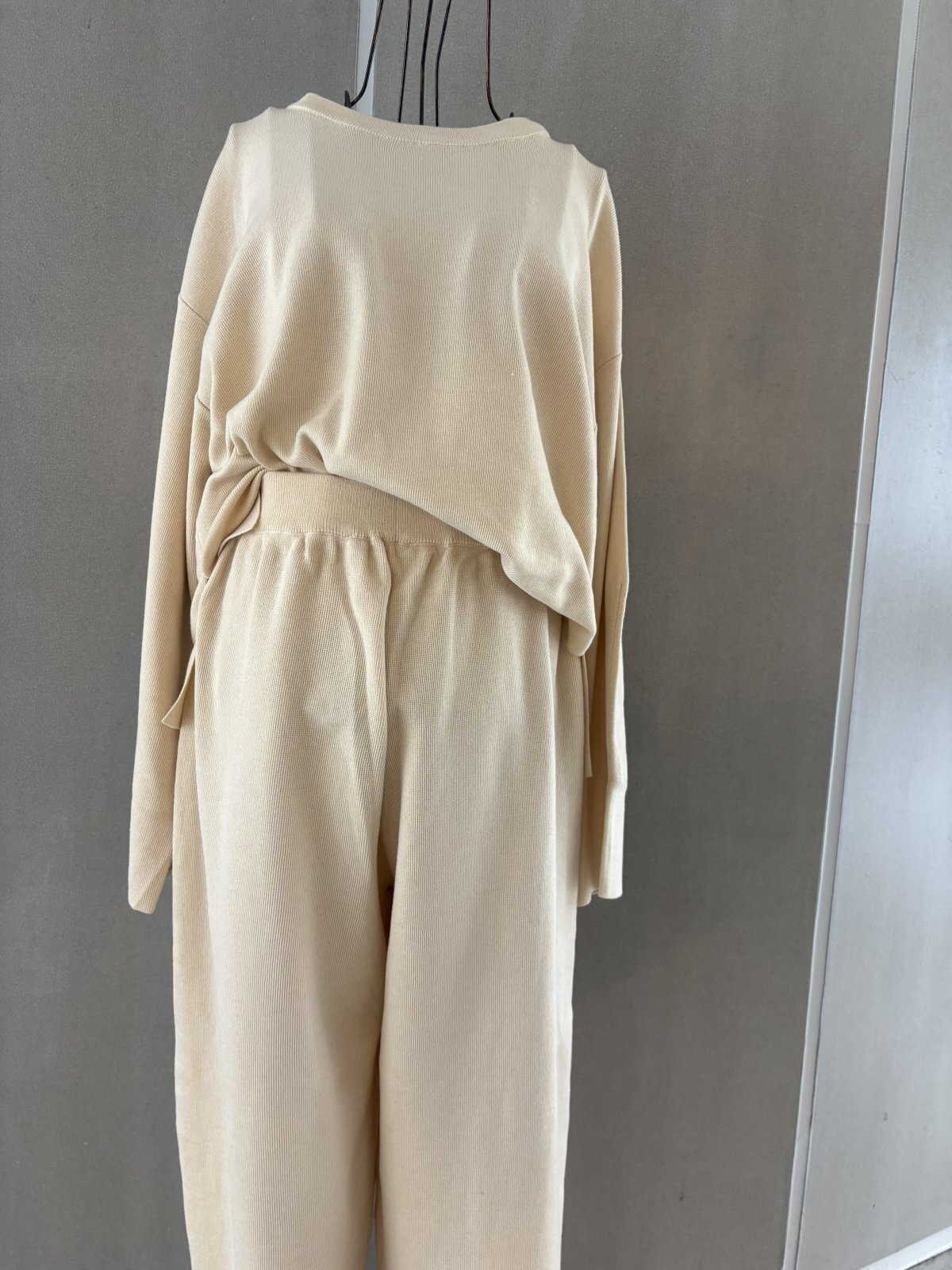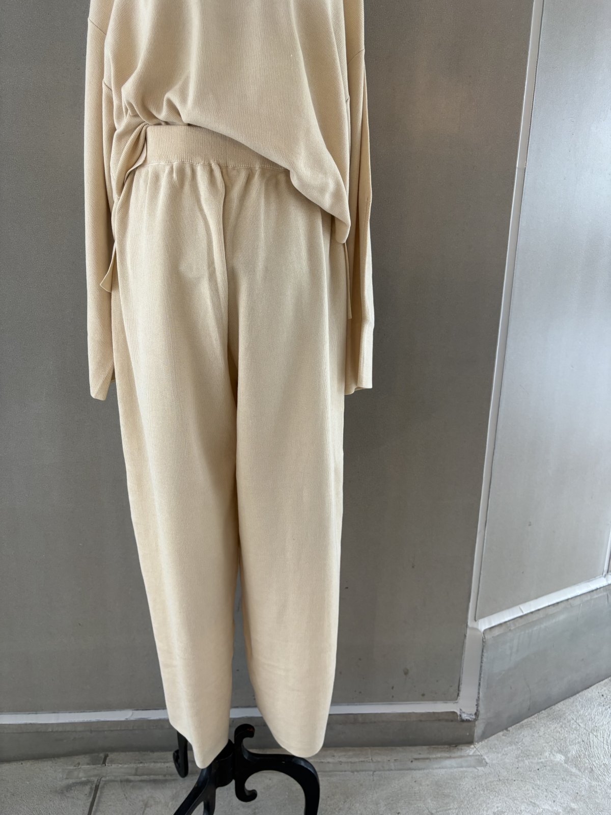 同素材のコクーンスリーブのトップスを合わせればセットアップに。