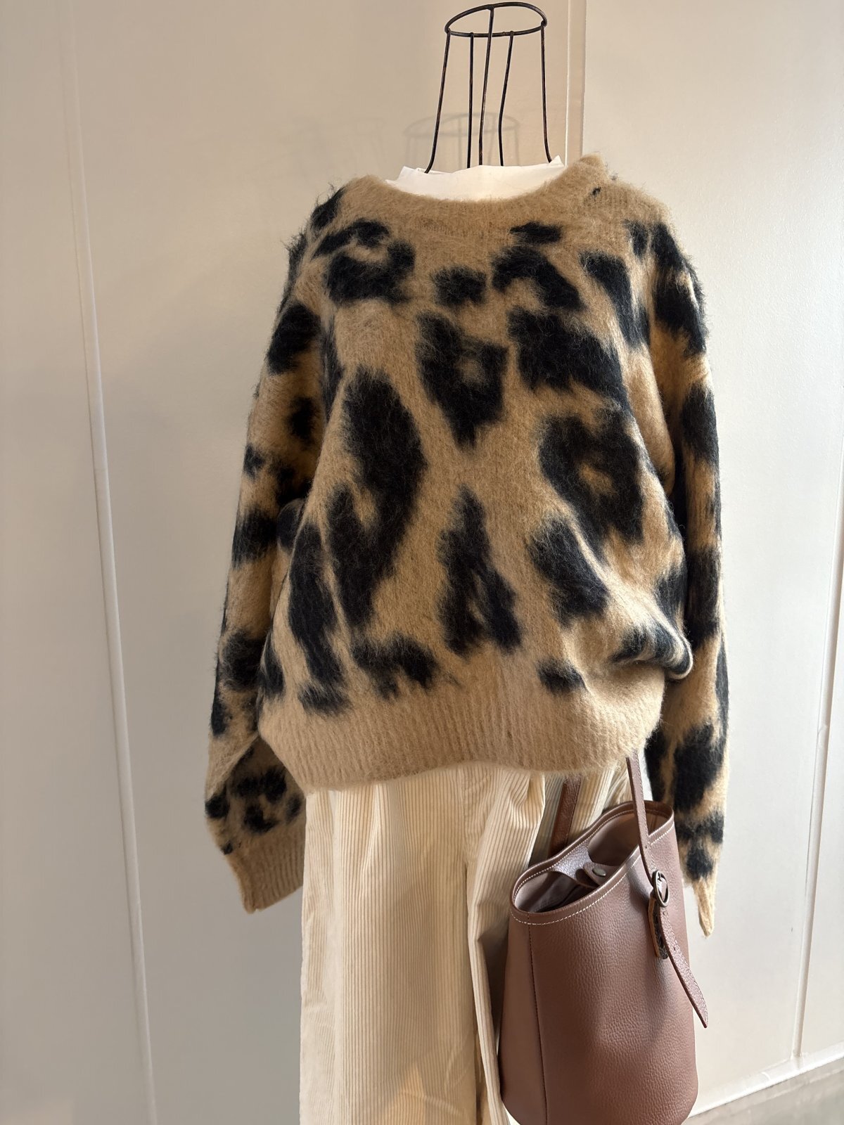 レオパード シャギー クルーネック ニット